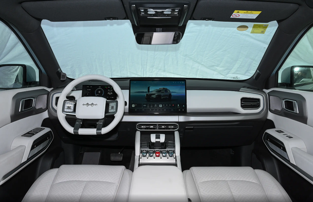 接着我们坐进车内,钛3在这里就有些豹系列的特征了,比如说中控挡位区域的实体按键,是不是带来了熟悉的“战斗感”?当然,15.6英寸悬浮式中控屏和四辐平底式设计的多功能方向盘就比较常规了,科技氛围无需担心,像实拍这款白色内饰也进一步提升座舱高级感,做工和用料也没什么可挑剔,对于十几万的定价来说是中上游水准了。