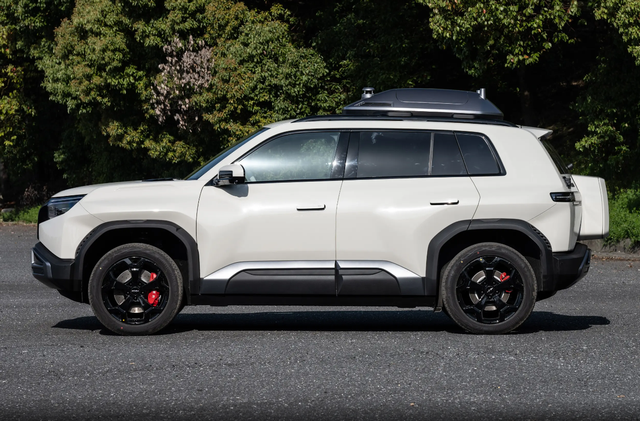 来到车身侧面,钛3拥有突出的轮拱造型,搭配熏黑五辐式轮圈和大尺寸红色刹车卡钳,运动感无需多言。尤其是新车尺寸并不差,起码在紧凑型SUV阵营算是大号,具体数据为4605*1900*1720mm的长宽高和2745mm轴距,当你见到实车时会感叹一下这车真不小。值得一提的是,因为提供与大疆联合研制的灵鸢智能车载无人机系统,所以顶配车型会在车顶配备“小书包”,如果从事摄影摄像这一行业不妨考虑一下。